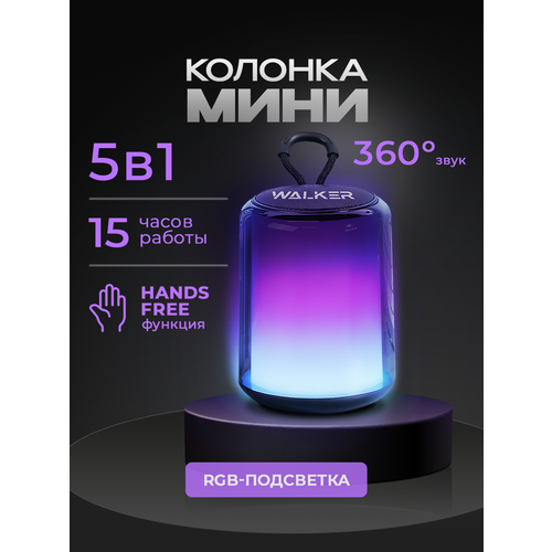 Беспроводная портативная колонка Bluetooth, WALKER, WSP-125, музыкальная переносная акустическая система блютуз для компьютера и телевизора, черный