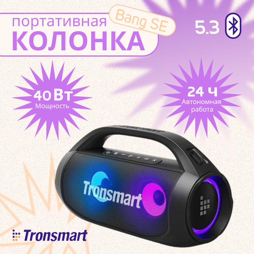 Колонка портативная Tronsmart Bang SE 40W Limited Edition Black, беспроводная акустика с подсветкой