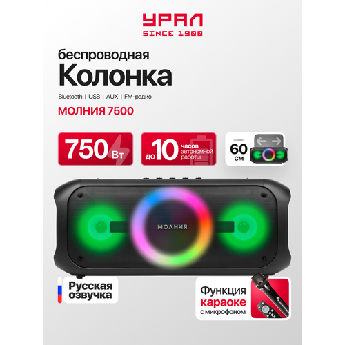 Портативная акустика урал "молния" 7500, 6000мАч, Bluetooth v 5,3, FM-радио, LED-подсветка