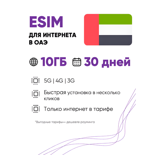 ESIM для интернета для ОАЭ 10 ГБ на 30 дней. Виртуальная сим-карта для ОАЭ