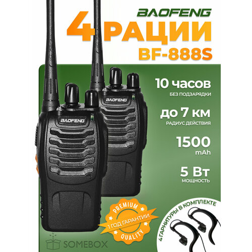 Портативная радиостанция Baofeng BF-888s 5 Вт / Черная комплект 4 шт / UHF