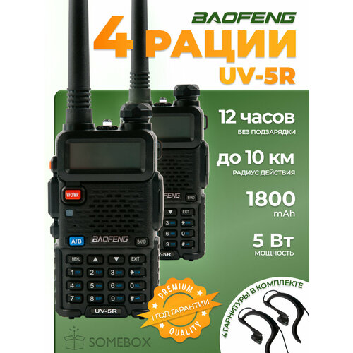 Радиостанция Baofeng UV-5R 5 Вт 1800 мАч, радиус 10 км, комплект 4 шт