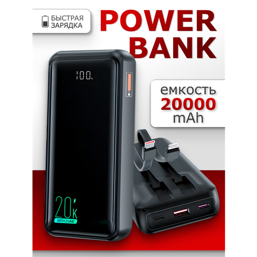 Повербанк для iPhone и Android / Power Bank 20000 Lightning, Type-c / Пауэрбанк для телефона / С проводами / Тайп си