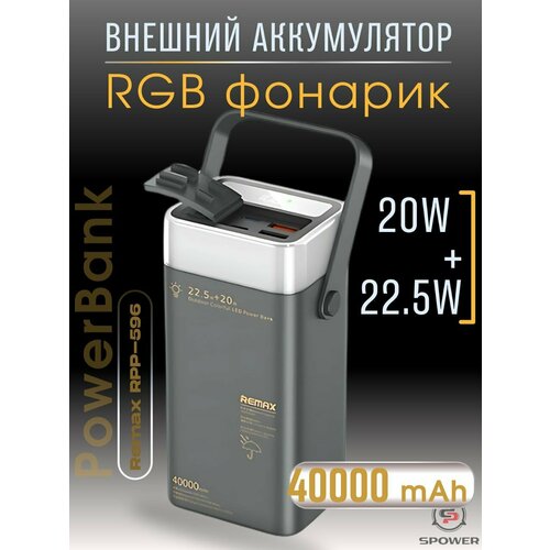 Power Bank внешний аккумулятор 40000 mAh с фонариком RPP596