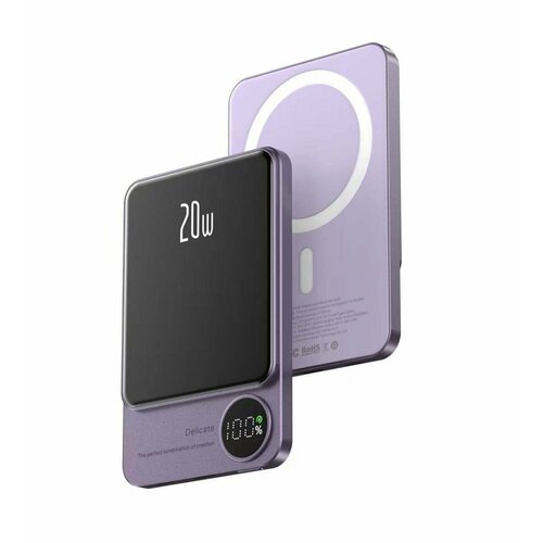 Беспроводная зарядка Magnet Wireless Power Bank Q9 20W 10000mAh для Apple iPhone / Портативный внешний повербанк MagSafe на Эпл Айфон / Сиреневый