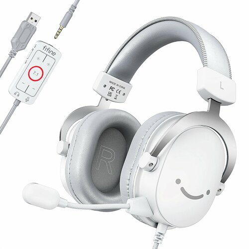 FIFINE Ampligame H9W проводные кожаные полноразмерные игровая гарнитура, Белый