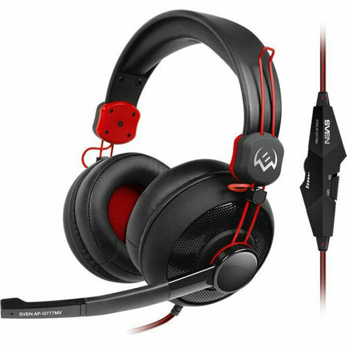 Наушники с микрофоном (гарнитура) SVEN AP-540, проводные, 2,2 м, с оголовьем, черно-красные, SV-0410540