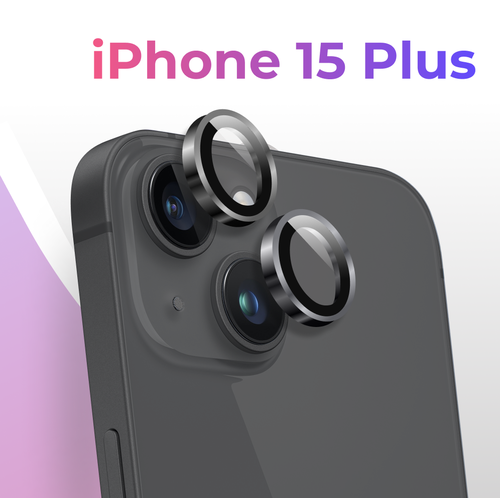 Защитные линзы для камеры iPhone 15 Plus / Противоударные стекла на камеру / Графитовые
