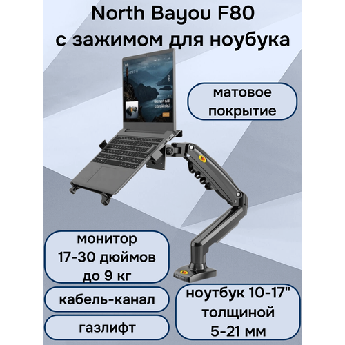 Настольный кронштейн для ноутбука 10-17" NB North Bayou F80 с зажимом FP-2, черный матовый