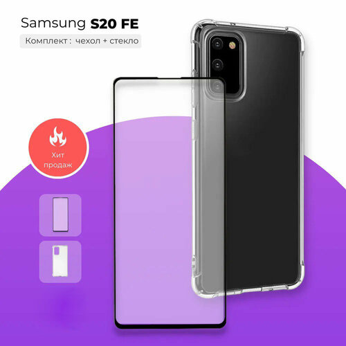 Комплект 2 в 1: Защитный противоударный прозрачный чехол + защитное стекло для Samsung Galaxy S20 FE / Самсунг Гэлакси С20 ФЕ