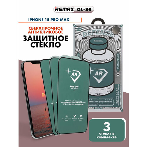 3 шт. REMAX GL-86 для iPhone 15 Pro Max, антибликовое стекло для Айфон 15 Про Макс
