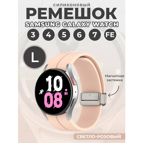 Силиконовый ремешок для Samsung Galaxy Watch 4/5/6, L, серебристая застежка, светло-розовый