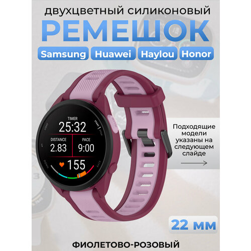 Двухцветный силиконовый ремешок для Samsung, Huawei, Honor, Haylou, 22 мм, фиолетово-розовый