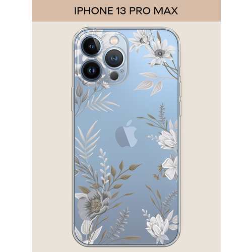 Чехол на Apple iPhone 13 Pro Max / Айфон 13 Pro Max с принтом Цветы сепия, прозрачный
