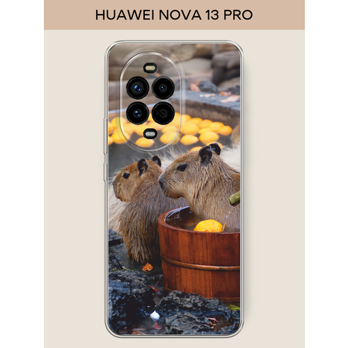 Чехол на Huawei Nova 13 Pro / Хуавей Нова 13 Про с принтом Капибары отмокают