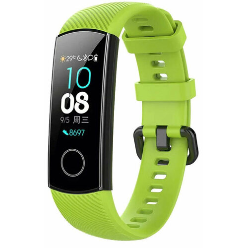 Силиконовый браслет для фитнес трекера Honor Band 4-5 с застежкой / Сменный спортивный ремешок на смарт часы Хонор Бэнд 4 и 5 / Салатовый