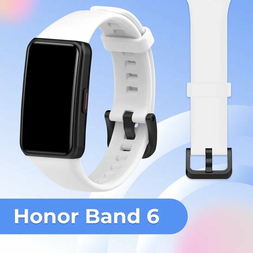 Силиконовый браслет для фитнес трекера Honor Band 6 с застежкой / Сменный спортивный ремешок на смарт часы Хонор Бэнд 6 / Белый