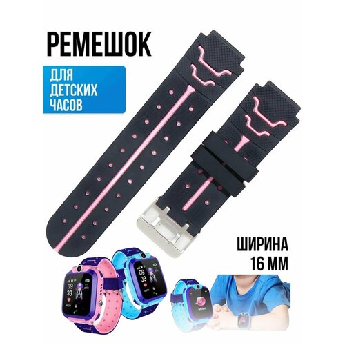 Универсальный ремешок для детских смарт часов 16мм. Черный/розовый