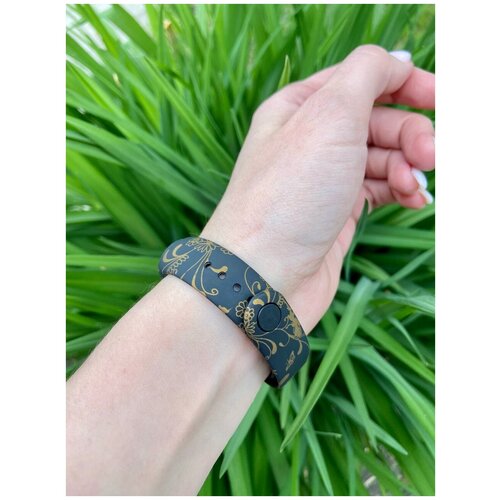 Ремешок для Mi Band 3/Mi Band 4 черный с золотыми цветами