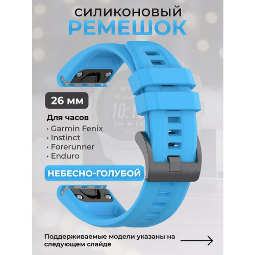 Силиконовый ремешок для Garmin Fenix / Instinct / Forerunner / Enduro, 26 мм, c металлическим фиксатором и баклей, небесно-голубой