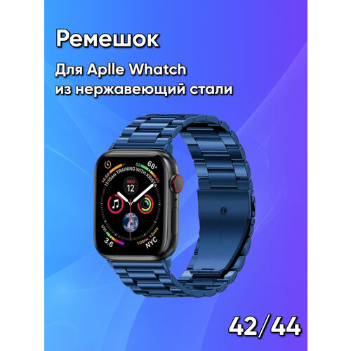Ремешок металлический для умных смарт часов Apple Watch 42/44/49mm series 3 / 4 / 5 / 6 /SE/Ultra блочный, Синий