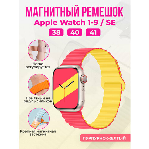 Магнитный силиконовый ремешок для Apple Watch 1-9 / SE (38/40/41 мм), пурпурно-желтый