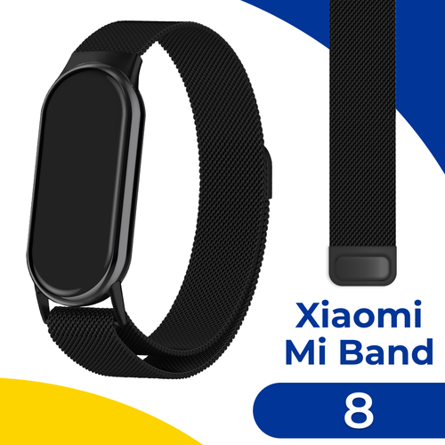 Металлический ремешок для фитнес-трекера Xiaomi Mi Band 8 / Стальной браслет миланская петля на умные смарт часы Сяоми Ми Бэнд 8 / Черный