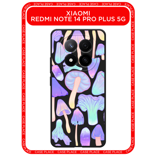 Черный матовый чехол на Xiaomi Redmi Note 14 Pro+ 5G / Сяоми Редми Нот 14 Про+ 5G с принтом Пастельные грибы