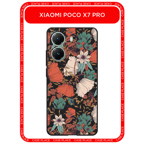 Черный матовый чехол на Poco X7 Pro / Поко X7 Про с принтом Несобранный букет