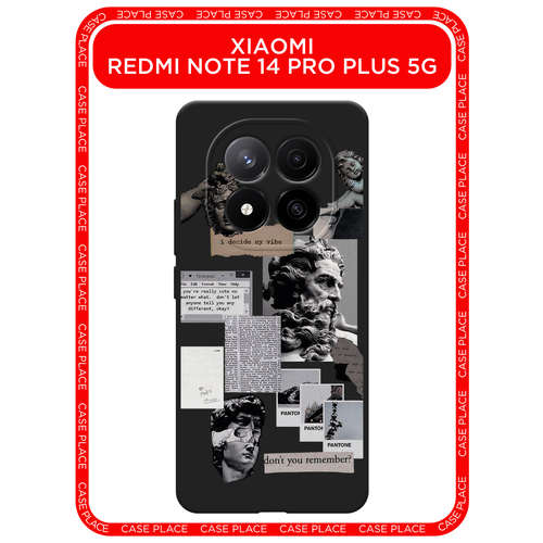 Черный матовый чехол на Xiaomi Redmi Note 14 Pro+ 5G / Сяоми Редми Нот 14 Про+ 5G с принтом Коллаж греческие скульптуры