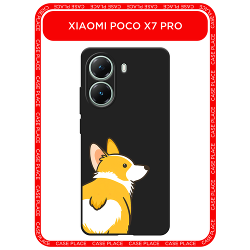 Черный матовый чехол на Poco X7 Pro / Поко X7 Про с принтом Корги следуй за мной