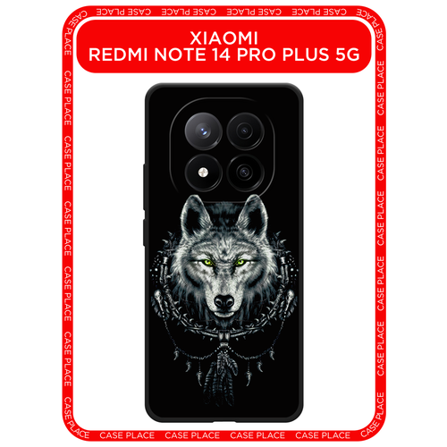 Черный матовый чехол на Xiaomi Redmi Note 14 Pro+ 5G / Сяоми Редми Нот 14 Про+ 5G с принтом Волк оберег