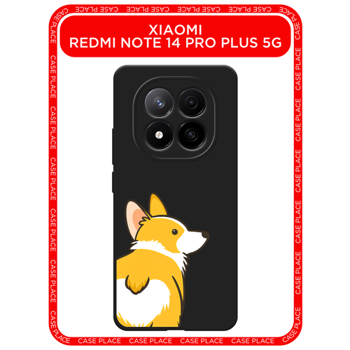 Черный матовый чехол на Xiaomi Redmi Note 14 Pro+ 5G / Сяоми Редми Нот 14 Про+ 5G с принтом Корги следуй за мной