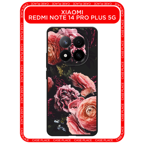 Черный матовый чехол на Xiaomi Redmi Note 14 Pro+ 5G / Сяоми Редми Нот 14 Про+ 5G с принтом Бордовые винтажные цветы
