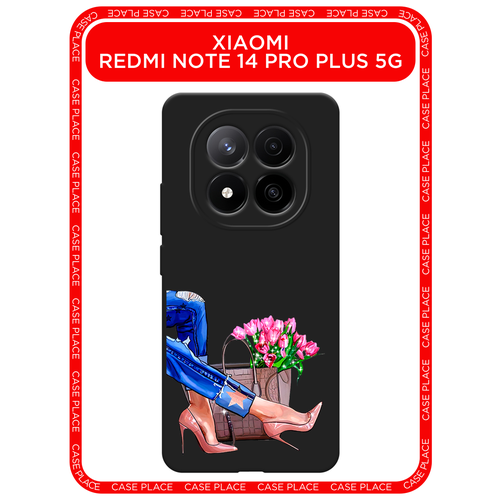 Черный матовый чехол на Xiaomi Redmi Note 14 Pro+ 5G / Сяоми Редми Нот 14 Про+ 5G с принтом Каблучки