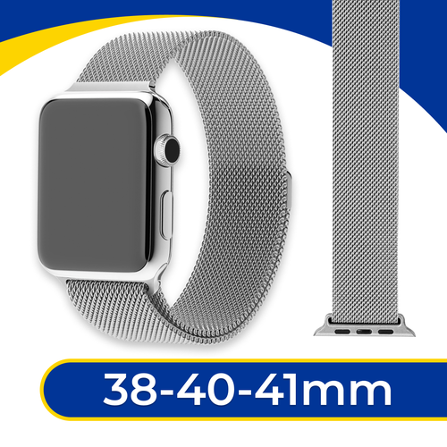 Ремешок металлический для Apple Watch 1-9, CE 38-40-41 мм, Смарт браслет, Миланская петля, Серебро, Эпл вотч ремень