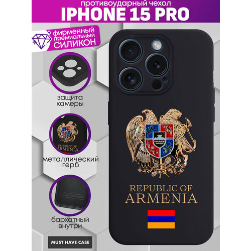 Чехол на iPhone 15 Pro Премиум с Золотым металлическим Гербом Армении