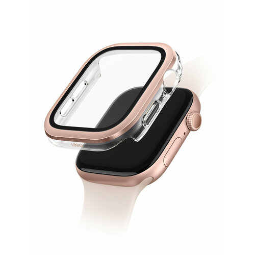 Uniq для Apple Watch 46 mm чехол VOUTE with 9H Tempered Glass Rose Gold