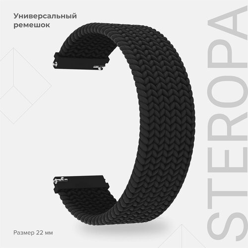Плетеный нейлоновый ремешок для часов 22 mm LYAMBDA STEROPA DSN-08-22-BK черный