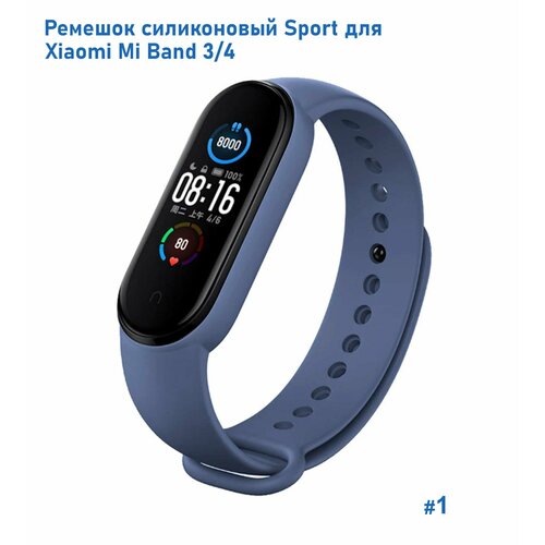 Ремешок силиконовый Sport для Xiaomi Mi Band 3/4, на кнопке, темно-синий (1)