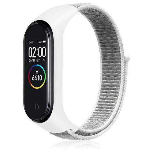 Нейлоновый ремешок для фитнес-браслета Xiaomi Mi Band 3/ Mi Band 4 / Mi Band 5 / Mi Band 6 / Mi Band 7, 10 бело-серый