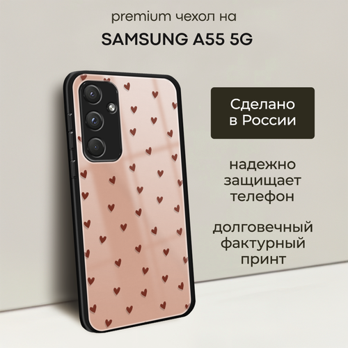 Чехол на Samsung Galaxy A55 5G / Самсунг Галакси А55 5G с объемным принтом "Красные сердечки на розовом фоне"