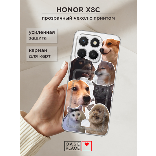 Силиконовый чехол на Honor X8c (Хонор X8c) с картой и принтом Мемы