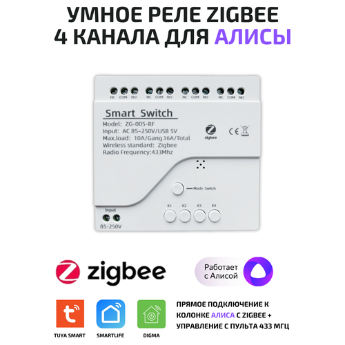 Умное реле ZIGBEE, 4 канала, для Алисы, на 4 устройства
