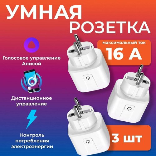 Умная розетка Wi-Fi - с Алисой, таймером и отслеживанием энергопотребления (Комплект 3шт.)