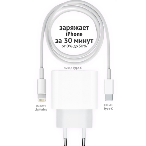 Сетевой адаптер питания 20w с кабелем в комплекте для iPhone iPad AirPods / Быстрая зарядка для айфона 20w