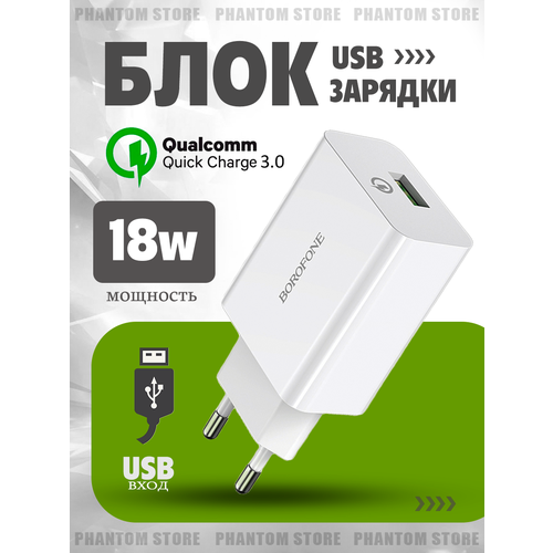 Зарядное устройство для телефона адаптер 18W - 18 вт ( Быстрая зарядка без кабеля) за 30 минут 50%