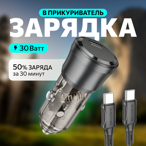Автомобильное зарядное устройство Borofon BZ24 PD20W с кабелем USB-C, черное прозрачное