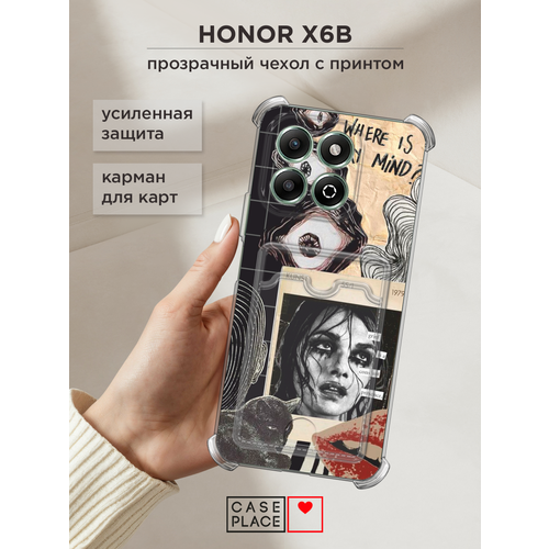 Чехол на Honor X6b (Хонор X6b) с картой и принтом Коллаж