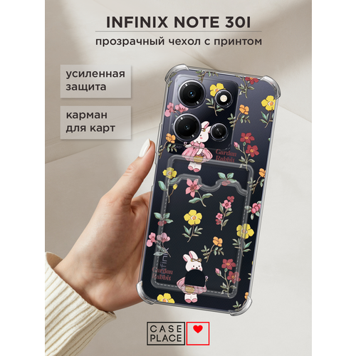 Чехол на Infinix Note 30i (Инфиникс Нот 30i) с картой и принтом Садовый кролик